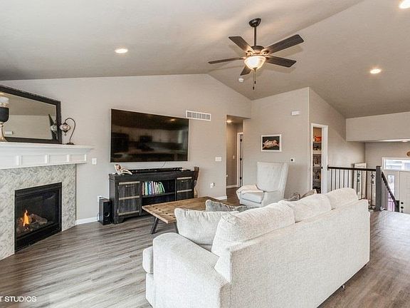 You need to see this fabulous home on the East Side - it truly is better than new! Almost 2400 sq ft of lovely living space with an amazing kitchen, huge island, beautiful quartz counters, stainless steel appliances, large pantry and cabinets galore! The vaulted great room features beautiful LVP flooring, cozy gas fireplace with new surround plus so much natural light. Off the dining room is a large deck overlooking the fenced backyard. Custom blinds throughout. The primary suite boasts of a large walk-in closet and private bath with 2 sinks. So much space to play in the huge family room with a 2nd fireplace with new surround. The walkout basement has a patio and access to the lovely yard. Don't miss the 3rd bedroom and bath - perfect for a guest suite. The washer/dryer are negotiable. The smaller 3rd stall garage has an overhead garage door so it's handy for bikes and a workshop. Updated landscaping and exterior lighting make this home in wonderful condition