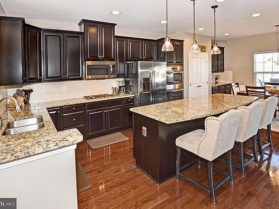 Absolutely beautiful brick front, 2 car garage, end unit townhouse in the sought after community of Seven Hills. You will love the open concept of this sun drenched home, additional windows allow natural sunlight to flow into every room. . The sophisticated main level has lovely dark wood flooring throughout and 9' ceilings. If you love to cook and entertain you'll cherish a deep appreciation for the large gourmet kitchen with an abundance of 42" expresso soft close cabinets, granite counter tops, stainless steel appliances, island, double wall ovens, recessed lighting and a pantry. Sliding doors lead out to a spacious Trex deck with a view of green space (not a row of townhomes). There is plenty of living space on the main level, lovely new wainscoting in the dining and great room area and a roomy comfortable living room. On the upper level the cozy Master Bedroom is accentuated with wonderful custom wainscoting adorning the main wall, a tray ceiling, ceiling fan and a walk in closet. The master bath is luxuriously appointed with dual vanities, separate shower and a soaking tub for ultimate relaxation. Two additional bedrooms and a convenient full laundry room complete the upper level. Lower level recreation room is the perfect space to gather with family and friends. The spacious room is equipped with a media room with built in speakers, "painted" screen and a projector (that conveys ). This level also includes a full bathroom and sliding door out to the patio area. This community offers numerous amenities including walking /jogging /biking trails community pool, tennis courts and Tot lots. Close to shopping, entertainment, and restaurants. Conveniently located to Route 50, 15 and 28 and Dulles Airport.