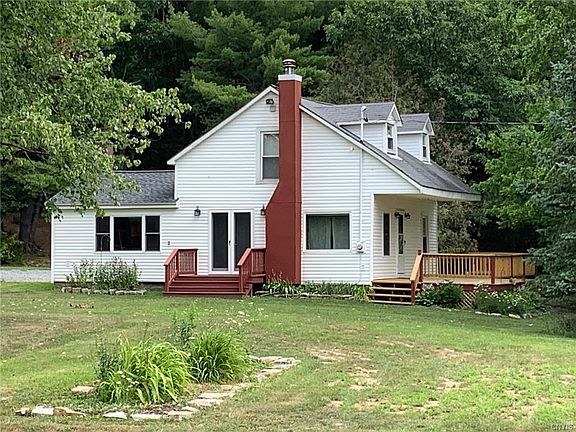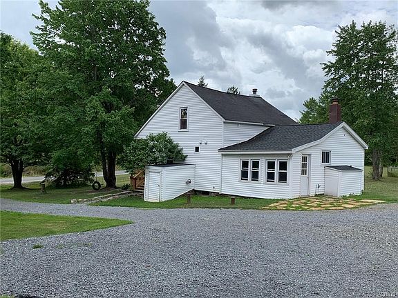 Private country farmhouse retreat (3BR/2.5BA) situated on 7 acres and across from 365 wooded acres, all next to Sixberry Lake. Close access to the many inland lakes for your recreation. This quaint and cozy home at (1170 sq.ft.) is small in stature, but easy to maintain vs a larger home. The house is super insulated and is also economical to heat using the Hearthstone(soapstone) wood stove and oil furnace. Completely renovated in 2012 with features including; Large front deck, eat-in kitchen, hardwood floors, natural scrolled moldings, master BR/BA, pocket doors, tile, 6 panel pine doors, full basement w/exterior entrance, 2-car detached garage w/new metal roof , exterior newly painted and more. Additional buildings include; 52' x 15' 1.5 story animal barn with (water, electric, concrete floor & fencing), chicken coop, 20' x 10' insulated & heated studio, wood shed and hook-up for a camper. Raspberry bushes and apple trees. IDEAL PROPERTY FOR ANIMAL LOVERS & OUTDOOR NATURE ENTHUSIAST! "PLEASE CLICK ON "VIRTUAL TOUR" OF THIS PROPERTY"