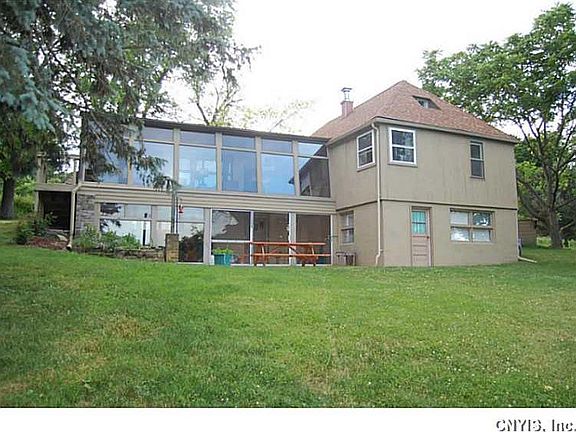 This beautiful 4/3 bedroom home sits on more than 2 acres and has spectacular views. You can watch the sun rise from either of the sun rooms. The house is in a great location in the Onondaga Hill area: just a few miles from downtown Syracuse but out in the country. The open concept living/dining room boasts pegged oak floors and adjoins a sunroom with floor to ceiling windows. The eat-in Kitchen has natural cherry cabinets and a large pantry. First floor includes a bonus room/office. Square footage doesn't include the finished, walk out basement, laundry, or utility room. New roof.