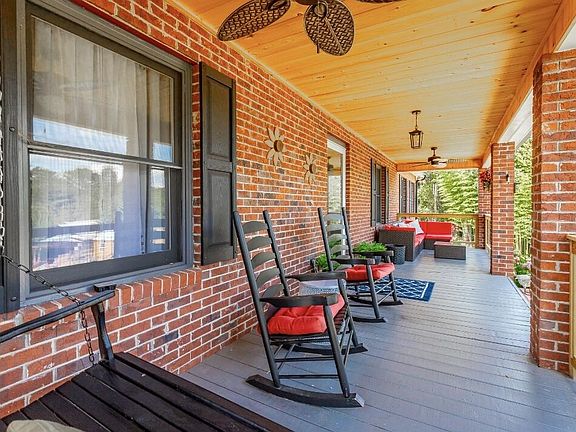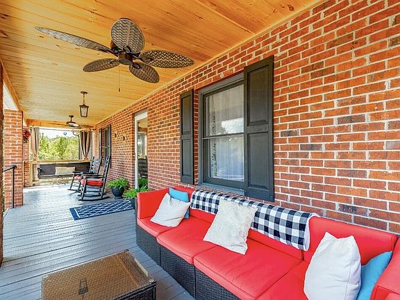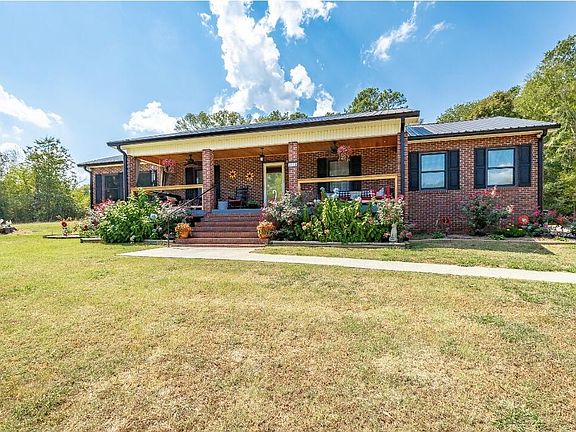 This all brick home is meticulously maintained sitting on almost 2 acres, with peacefulness to sit on your oversized front porch and relax and see the views. The kitchen has beautiful white subway tile, The oversized kitchen has lots of cabinets, and has French doors which lead out to the spacious deck and back yard which is fenced in, there are new gutters, new landscaping, new wood ceiling and rails on front porch, all new paint and lighting throughout the home, plus the 2 car garage and a carport space for extra coverage, there are two new out buildings as well. Come see this gem before it goes!