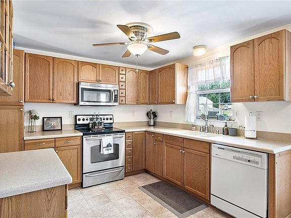 This is the home you've been waiting for! Large corner lot, spacious split foyer - upstairs leads you into large living room, updated kitchen with Hy-Mac solid surface cabinets, upgraded cabinets with pull out drawers, glass top stove, stainless steel microwave. French doors off kitchen to deck, retractable awning over deck with remote control. Fully fenced in backyard with brand new privacy fence! Primary bedroom with large walk in closet. All brand new carpet downstairs and freshly painted, fireplace & bar. Theater area with projector & screen for family movie night! Large storage room with utility sink off laundry room that has access to backyard. Features include asphalt driveway, vinyl tilt out replacement windows, vinyl siding & gutter leaf guard, newer vinyl in foyer, baths & utility room. Aluminum shed with electricity and work bench. Perfect timing to buy your new home before the holiday season.