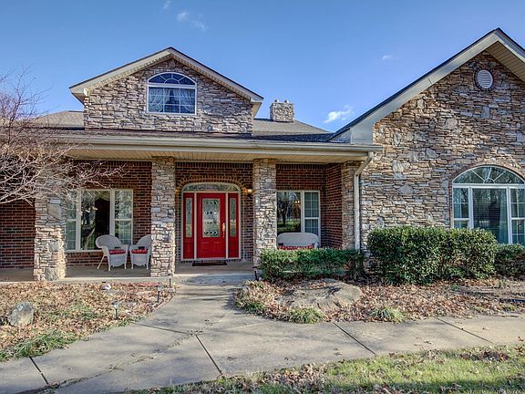 1-story custom with panoramic views! Open floor plan with split bedrooms. 3 huge BRs + elegant walnut office. Master suite includes BR with view and His+Her baths & closets. Large covered porch overlooks 1.5 acre treed lot. BR#2 w/ private bath could be second master or mother-in-law. Aerobic septic. roof (2020), HVAC (2018) 70-gallon HWT w/ circulating pump. Creek taxes + Jenks schools!