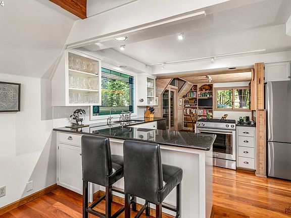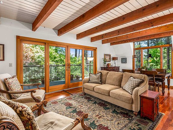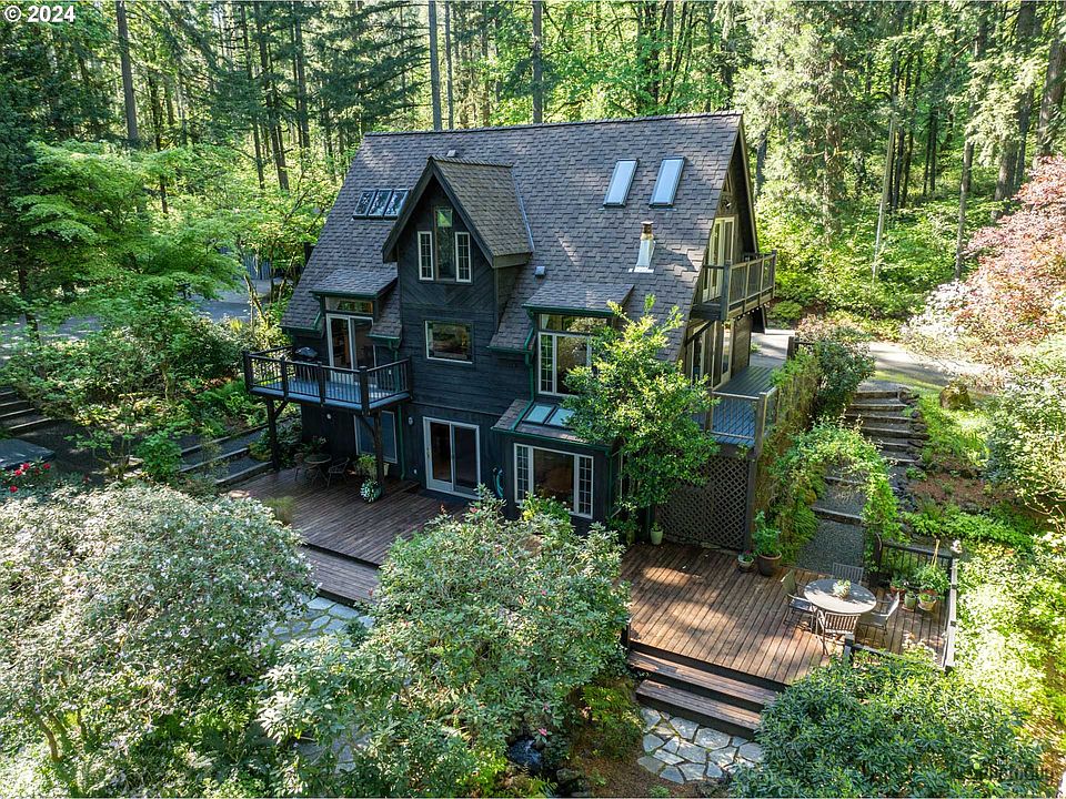 Complete privacy! This Custom 3 story home overlooks the McKenzie River Valley and is situated on 5.45 acres only 15 minutes to town and it feels like a private retreat. Inside you will appreciate the rustic elegance and unique artistic touches. Each level of the home has a warmth and personality all its own. The main level greets visitors with a glimpse of the gardens, and it feels like you are in a tree house. The open floor plan is ideal and has a nice flow into each room, main living area has a wood fireplace and formal dining room that flows to the kitchen and an informal dining area. The upstairs features an intimate nook for reading and two upstairs bedrooms that each have French doors with a private sitting area overlooking the lush gardens and one bedroom has a fireplace. Downstairs has a spacious family room with a propane stove, wet bar, library, and French doors leading to the gardens and a main bedroom situated to enjoy the private views. Outside is like visiting your own private park with mature landscaping, inviting meandering paths, water feature, various decks and patio, hot tub, garden area, 24 x 24 shop and 2 separate carport areas. Call to view this private oasis in the middle of the McKenzie recreational area.