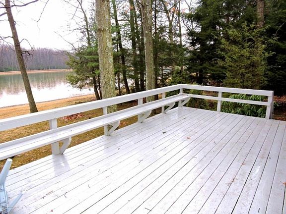 Lakefront Brick Ranch Home featuring an Open Layout with Antique Heat Troller Wood Stove in the Living Room plus Dining & Kitchen Area with Breakfast Bar & Sliders to the Deck that Overlooks the Lake. Nice Size Bedrooms, 1.5 Baths & Basement is Partially Finished w/Gas Insert. 1 Car Garage, Newer Roof & Newer Appliances too!
