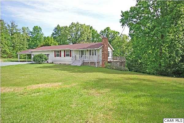 Quiet location, mostly updated, ranch home less than 30 minutes from Cville. So much potential at this price! 2+ acres adjoining a stream w/private back yard. Expansive decking on back & side of home to enjoy this great yard! Brand new woodwork, paneling, & built ins on main level. updated kitchen with concrete countertops. Brand new heating system. Updated bathrooms.