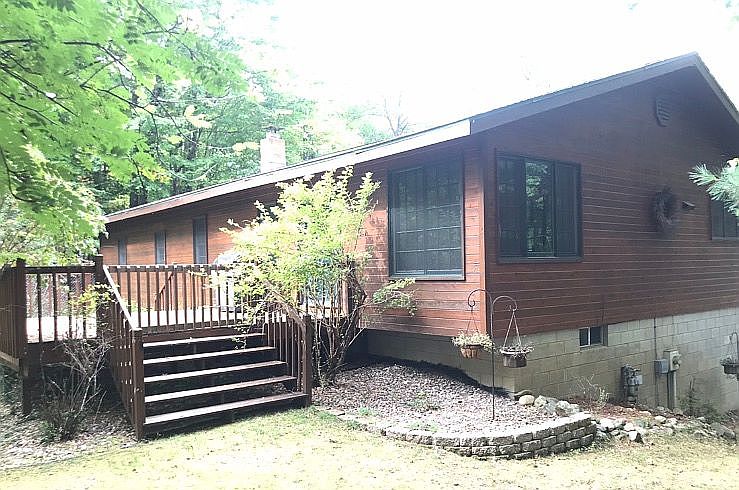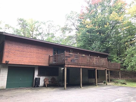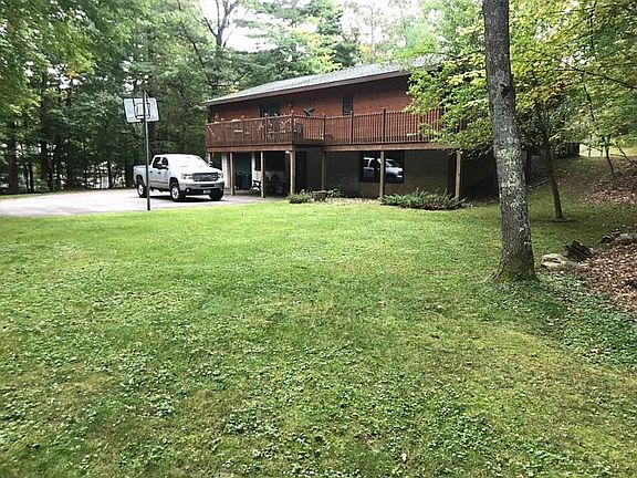 Well kept home with an open concept, featuring a large dining room, living room and kitchen (with custom cabinets topped off with quartz countertops) a large walk-in pantry is positioned just off of the dining room for added storage. The home has 3 bedrooms located upstairs and one in the finished walkout basement. The lower level also features two additional living spaces, creating many possibilities for the kids or you to enjoy. Lower level laundry room, with laundry shoot from the upstairs hallway. A small lower level workshop, is also an added bonus, with access from in the house or from outside via an overhead door. The pole building is the perfect spot for your vehicles and plenty of room for all your toys. A blacktop driveway leads up to the well hidden home from the road home, creating plenty of privacy. Watch deer and turkeys eat acorns and apples from your 3 apple trees while sitting on either of your 2 large decks. If you want a private setting in a relaxed neighborhood close to town, this is the house for you. A must see to truly appreciate.