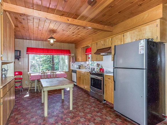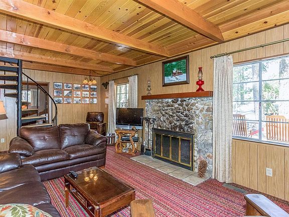First time on market in over 60 years, this nostalgic and furnished cabin sits on a level, nicely treed, nearly 1/2 acre lot (a total of 2 1/2 merged lots). Tax records state cabin is 940 sq ft, but that does NOT include unpermitted upstairs bedroom with 1/2 bath and a kid's room; also garage with overhead apt with 1/2 bath. Property has 2 large Tuff Sheds, firepit, 2 horseshoe pits and more. New deck in 2016. Lots of curb appeal. Even has granite outcroppings. One of the largest lots in West Village with plenty of parking. Great location and walking distance to village.