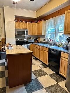 Check out this 3 bedroom home! Convenient location - with gas heat, newer roof, replacement windows, newer hot water heater, large kitchen with island & laundry hookup, living room, dining room & 1/2 bath on 1st floor. Newly remodeled bathroom w/Jacuzzi tub. Off street parking and small fenced area for yard.