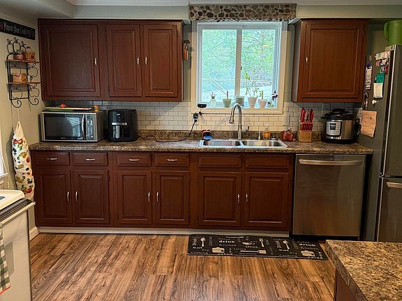 Tucked away on a dead-end street, is this 4-bedroom, 1 1/2 bath on 2 city lots, that has had a complete main floor renovation, kitchen, full bath, utility room, flooring, rough sawn pine on the living/dining room combo ceiling, walls removed & walls added. Nice size walk-in kitchen pantry. Newer Range/Oven, DW, refrigerator, hot water heater. Covered front porch and large raised back deck with a gazebo that can stay and an above ground pool. The SPACIOUS back yard is enclosed with a high wood fencing, offering privacy and security from those critters that like to get in your gardens! All 4 bedrooms and 1/2 bath are located upstairs. Bathroom has been updated. Mini split for A/C on the main floor. ***Seller will either be replacing the roof shingles prior to closing or will have $5,000 held in Escrow out of closing for the replacement after closing.
