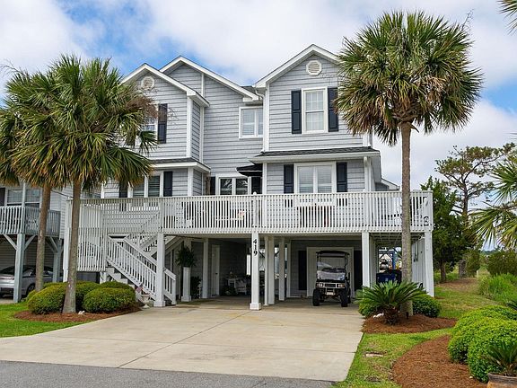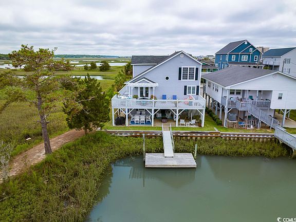 Singular, historic, beautiful, and new on the market for the first time, this custom-built channel home is astounding. The marsh-front rare find has been continuously occupied and well-loved since 1984 by the original builder and owner. Now it can be your dream home with new renovations, sold upscale furnished with a does not convey list. The location is incomparable, magnificently situated on a beautiful marsh-front property with private access to a small peninsula. Boasting a floating dock with channel access, the house is only three blocks from the ocean. Prepare to have your breath taken away by the array of wonderful wildlife, heron, egret, and even bald eagles. Binoculars are a must! It is dramatic with a spacious composite decking surrounding the home on three sides, serving up more extraordinary views of the channel with custom landscaping of palm trees and fabulous lighting and areas for relaxation, a party, or taking in the breathtaking natural vistas. The home is a raised beach house with cedar shake vinyl siding. Pull up to the drive and find the option of covered vehicle parking or activity areas including flex seating space and a fire pit. On this ground floor there is plentiful storage with easy access to the large dock providing viewing enjoyment of the marsh and channels and from the French doors opening from the large, ground-level room onto the marsh with unlimited scenic beauty. This room is ideal for an art studio or man cave. In addition to storage on the ground level, this layout offers non-heated/cooled sink/toilet and enclosed outdoor shower. Then, up the front exterior stairs through the front door covered by a beautiful canvas awning to the newly renovated main level. A portion of these exquisite renovations was due to a recent fire. Almost everything is state of the art and new: Cedar Shake Vinyl Siding; GE Stainless Steel Stove, Refrigerator, Microwave, and Dishwasher; Garbage Disposal; Seamless Quartz Counter Tops in Kitchen, including a Large Work-and-Breakfast Bar Island, and in Master Bathroom; GE Full-Size Stackable Washer/Dryer Fitted into a Perfect Laundry Nich at Back of Master Bedroom Closet; New HVAC System with Two Units, One for Each Level; New Hot Water Heater; New Tile Kitchen and Bathroom Floors; New Interior/Exterior SONOS Sound System; Three New Smart TVs; New ESEECLOUD Security System; New Ceiling Fans Throughout and More! The heart of the home is the main two-story level featuring simplicity and style. The main floor flows beautifully to the outside decks providing plentiful sunlight through a wall of windows on the marsh-side. Upon entry, there is formal dining with views and ease of access to the kitchen and main-living great room. The stars of that glamorous show are the seamless quartz counter tops, impressive vaulted ceiling, and the circa 1850’s remarkable antique hardwood flooring from a Charleston warehouse. Don’t miss the beachy coral accent color finished into the wood, genius! Likewise, the brick fireplace is from the same Charleston warehouse and time period. The fireplace is ready for the new owners’ operating choice. The master bedroom is delightfully oversized with a sitting area and charming upscale furnishings. The laundry niche is included in the huge walk-in master closet, while the master bath has a beautifully tiled walk-in shower and linen closet. Note that all bedrooms have wood flooring. Travel up the staircase to the top level where there are three more bedrooms. One bedroom is currently used as a study and has an adjoining welcoming loft-lounge. The other two upstairs bedrooms are serviced by a Jack-n-Jill bathroom. Closets and storage are plentiful. The area under the stairs can serve as storage and/or pantry. There has been little intrusion to the home due to flooding, although some water has entered ground level during major hurricanes, which issues the owner has mitigated. See this treasure today and create your own memories for the next 40 years!