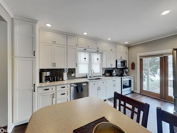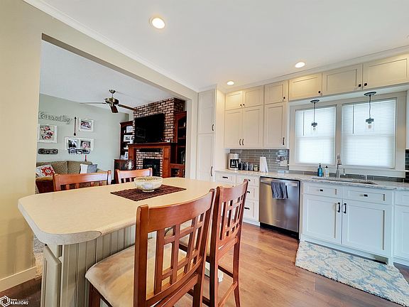 Modern updates and comfort can be found in this 3 bedroom, 2.5 bath 2 story home! This home features an eat-in kitchen (appliances included-breakfast bar optional), formal dining room, main floor office/parlor, open staircase, pocket door, stained glass, decorative trim, bathrooms on each level, lower level family room with bar, laundry hookups in the lower level and 2nd floor (stackable washer/dryer included), and large living room with fireplace and custom made shelving. Improvements and updates include remodeled kitchen in 2020 with custom cabinets, marble countertop, and new flooring; vinyl tilt-in windows (2010); remodeled full bath with custom cabinets, heated tile floor, and heated jet tub with tiled shower; fiber cement siding (2017); new gutters, down spouts, and gutter guards (2020); 26' x 28' detached garage (2008); asphalt roof on house and garage (2017); and large private rear patio (2008). Lots of space for entertaining both inside and out!