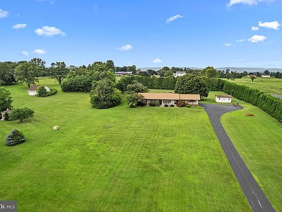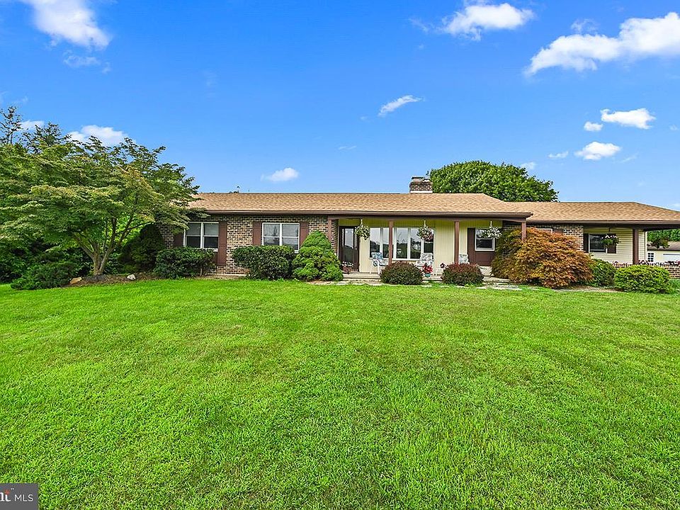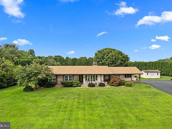 Very cute country ranch style home on 2+acres. Super private location for this home that features all one floor living. Brand new heat pump and central air just installed! Large eat-in kitchen with brick fireplace that is double sided and faces into the living room area. This will be perfect and cozy for cool nights. Huge open living room/dining room area that also opens to a bright 3 season room with tile floor and has it's own split A/C unit. The view from this room as well as the front of the house is phenomenal. The owners state that this location is very peaceful and sees little traffic throughout the day. Wildlife abounds as well with turkey and deer, etc. 3 bedrooms and 2.5 baths. Large owner's bedroom that has it's own bathroom with 3'shower. The hall bath has a double bowl sink and tub/shower. There is a conveniently located powder room off the kitchen as well as a main floor laundry. Large 2 car garage and more off-street parking that you could ever need. Very cute front porch to enjoy the view of the countryside. The property has 2+ acres and overlooks farmland in the front. There is a large shed off the driveway and also a built-in shed attached to the rear of the home. The roof is new in 2020. This home could use a few updates but is genuinely ready to go with a lot of the big items already taken care of. The basement is HUGE and the walls were waterproofed at some point during their ownership.