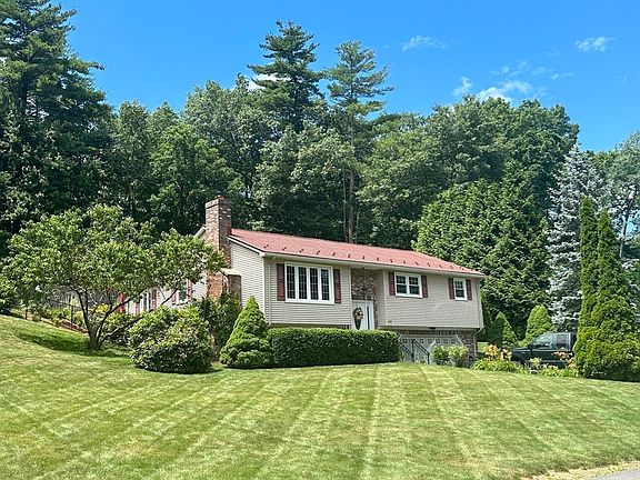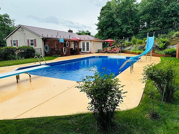 Welcome to your own private oasis! Enjoy this beautiful backyard retreat featuring an in-ground pool, fenced in yard, and lovely landscaping filled with vibrant flowers.This home is an owner's pride, boasting numerous updates including new siding and a new roof with a lifetime warranty ensuring you'll never need to replace it again. Conveniently located close to all amenities and minutes from the Mass Pike. This home offers 3 bedrooms, 1.5 bathrooms, and a finished basement with a workout room, second pellet stove, half bath, laundry room, and 2-car garage. The master bedroom and office feature french doors leading to the patio and inground pool. With central air and a separate fenced yard for your furry friend to roam around all this and more on nearly an acre of beautiful property, this is a must-see!