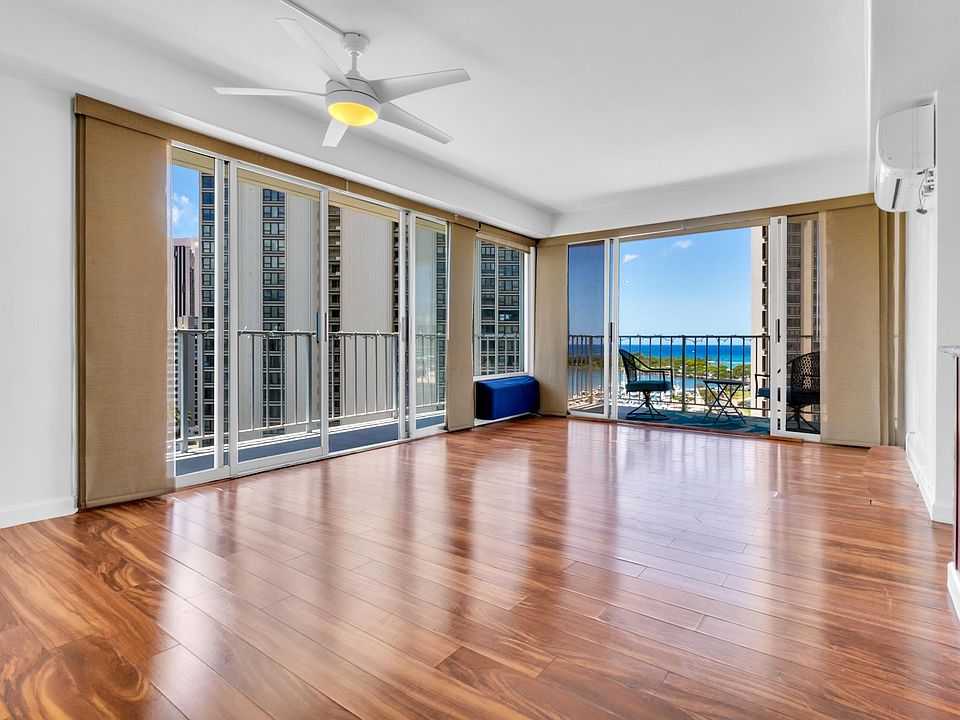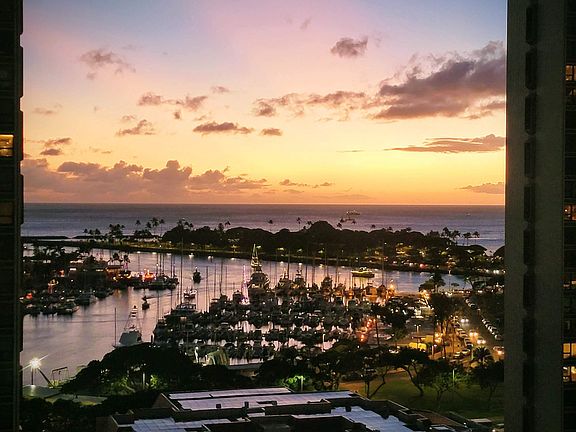 Available now Wow, this spacious breezy home has it all! Including split AC and custom designer blinds (blackout blinds in bedrooms). Enjoy views of the azure sky and turquoise ocean during the day and twinkling multi-colored city lights at night. Friday nights offer a special spectrum of colors as you enjoy the Hilton Fireworks right from your sofa. In addition to the views, this corner unit offers cooling trade breezes. The split AC keeps it cool during Kona winds. Conveniently located across from Ala Moana Mall and short walk to Waikiki Yacht Club, Ala Moana Beach Park, and Magic Island. 1 parking, water included, small dog allowed. Renter responsible for electric, internet. no smoking in the unit, small dog is allowed.
