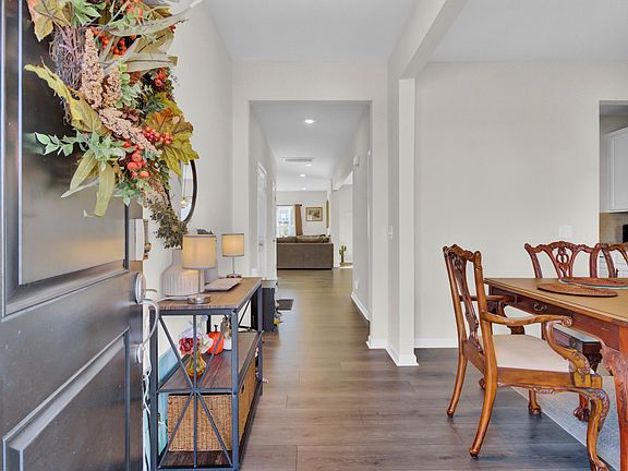 Welcome to this gorgeous, meticulously maintained home in the highly coveted neighborhood of Nexton in Summerville SC! This is the spacious, 4-bedroom, 2.5 bath, 2352 SqFt True Homes Inverness Model features an extremely open floorplan, rich LVP floors, and an abundance of natural light. Upon entering, to the right you'll find the dining/flex room that leads to a butler's pantry that acts as a drop zone and coffee bar.Ask about our lender credits and interest rate buydown options! The chef inspired gourmet kitchen features a huge, oversized island with seating for four and stunning pendant lights, custom finishes,granite countertops, stainless steel appliances, beautiful cabinets, tiled backsplash, walk-in pantry, and eat-in kitchen area. Next is the fantastic family room that has a wall of windows and is large enough for an oversized sectional couch. The spacious primary bedroom is located on the second floor and has a relaxing spa-like ensuite bath featuring an upgraded glass shower and walk-in closet. You'll find the additional bedrooms on the second floor as well. Step outside to the private backyard where you can unwind or entertain on the patio. Featuring a south-facing roof, perfect for solar panels, and built-in shelving with a work bench in the spacious garage. Wall-mounted TV located in the living room is included with the purchase. Ask about our lender credits and interest rate buydown options! The home is within walking distance to the resort style community pool. North Creek Village in Nexton is a wonderfully landscaped community with a park, club house, and pool! The neighborhood is close to local shopping and grocery stores and is a short drive to downtown Charleston with 5-star restaurants, world class shopping and iconic history as well as a short drive to the beaches, the airport, Boeing and Daniel Island. This home offers the perfect blend of comfort and location. Don't miss the opportunity to make it yours!