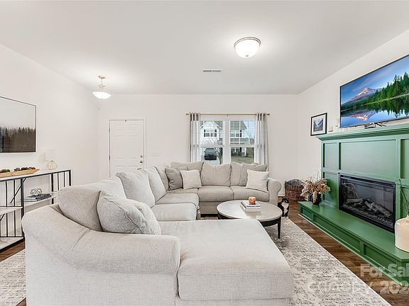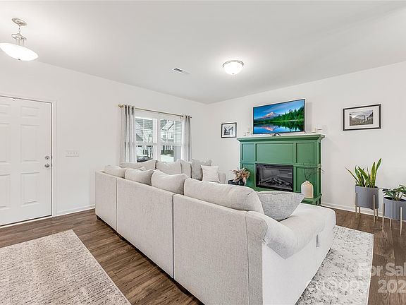 Built in 2021, this "like-new" home offers modern style & functionality. Envision yourself rocking & sipping your favorite beverage on the covered front porch. As you enter, you're greeted by an airy interior w/wide-plank chestnut LVP floors that seamlessly connect the living, dining & kitchen areas. The family room w/custom built-in fireplace is perfect for spending quality time. The kitchen boasts sleek marble c-tops, SS appliances, 36" staggered cabs w/ trash rollout, tile backsplash & large island; perfect for entertaining. The home office w/solid French doors & triple windows offers abundant light for focused work. Upstairs, you'll find a cozy loft area, ideal for relaxing. The primary bedroom features an ensuite bathroom w/dual sink vanity, oversized tiled shower & walk-in closet. Two additional bedrooms provide more space for family/guests. The sodded yard w/patio backs to common space for privacy--a perfect outdoor retreat. USDA elligible. Highly ranked Locust ES.