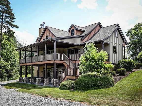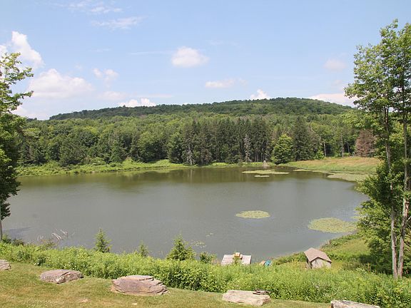 INDIAN LAKE ESTATE - 222 ACRES - PRIVATE !! 12 ACRE LAKE - STREAM -GUEST CABIN - VIEWS - Spectacular 6 bedroom, 3.5 bath, custom home overlooking your own mountain lake. Perfect blend of rolling fields & mature woods. Sportsman's paradise with great fishing and hunting. Highlights include open floor plan, great room w/glass facade, cathedral ceilings, huge stone fireplace, gourmet kitchen with luxury appliances, family room with 2nd stone frpl and 2nd kitchen for outdoor entertaining. Central air and generator..Professionally landscaped grounds. Detached 4 car garage w/storage plus lake side guest cabin. Rare find!