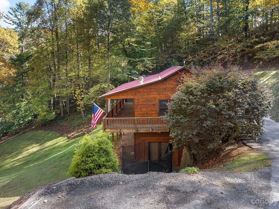 Meticulously maintained cabin in the woods! Perfect for full time residence, part-time mountain home or investment rental. Lovingly maintained, open concept home with beautiful tongue and groove wood with vaulted ceilings and gorgeous fireplace. Main level primary bed and bath with large closet and half bath with laundry. Head downstairs to the finished basement where you'll find a large family room, bedroom, bathroom and ample storage. Enjoy the privacy of your wooded 1.37 acres of property from the wrap around porch. 2 bedroom but plenty of space to spread out and make it home! Just a short drive to adorable downtown Burnsville, shopping and dining. Easy commute into Asheville or Johnson City. Go and Show today!