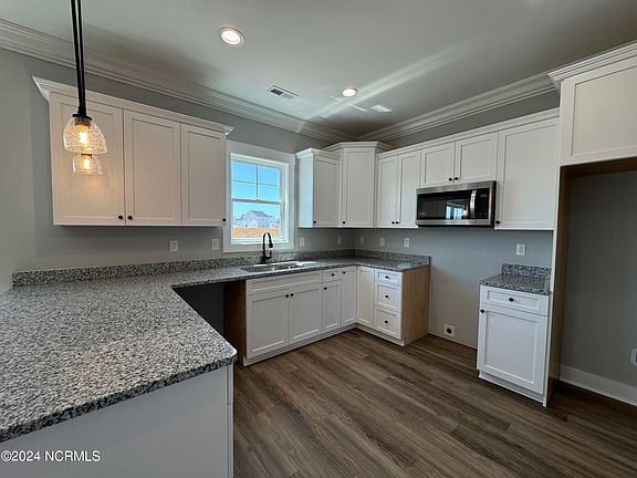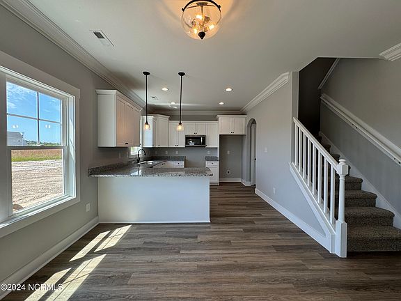 **$5,000 Use-As-You-Choose Allowance** Welcome to Holbrook Homes Westport floor plan, located in the newest phase of Kingsbridge II, a waterfront community in Hubert, North Carolina. Boasting upgrades that are hard to find in any new home in the area, you're sure to notice the luxury crown molding that is in every room downstairs, the formal dining room with coffered ceilings, and the large sparkling kitchen, complete with custom cabinetry, recessed lighting, LVP flooring, and granite countertops. With 3 large bedrooms, a bonus room, and lots of closet space, this home is one for your must see list! Large, private, cul-de-sac lot! Located minutes from Camp Lejeune's back gate, Swansboro, area shopping and dining, and public boat ramps! Schedule your tour of a similar home today!