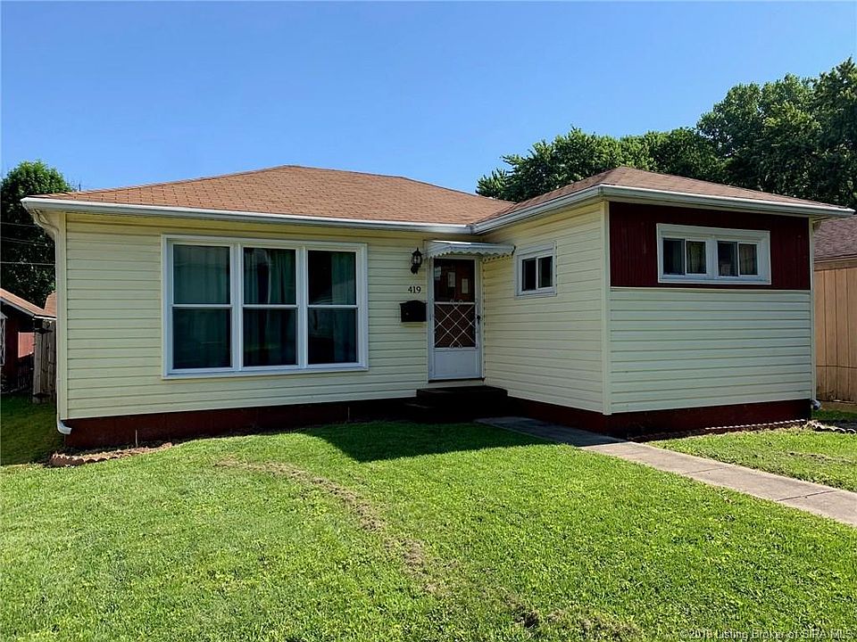 MULTIPLE OFFERS RECEIVED! 2 Bedroom home with a full basement, detached garage, and located on a dead end street close to downtown Jeffersonville and I-65. This home has been in the same family for a long time with recent updates including replacement windows throughout most of the home, furnace, AC, and roof is approximately 10 years old. Sliding door off the back bedroom leads to a deck overlooking the fenced in backyard and garage/carport with alley access. The full, unfinished basement has built in cabinets, toilet, sink, and washer and dryer that stays with the home. Great for storage or could make a great family room. Walking distance to the Clarksville Aquatic Center and 1 mile to the walking bridge!