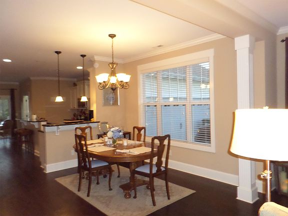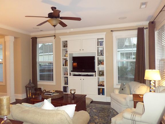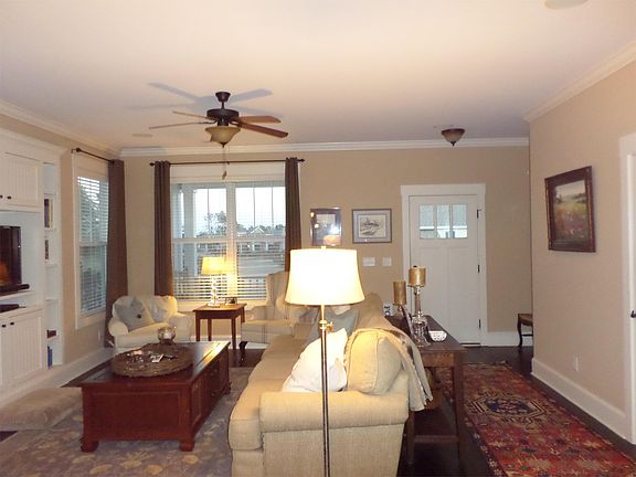 The Cottages in the Neighborhoods of Holly Ridge. Pristine 3 bedroom, 2 bath home with enlarged great room, Separate dining room. Antique White Bead Board Custom Cabinets with Granite in Kitchen with single large stainless steel sink in island. Blended stone Mosaic with glass back splash. All GE stainless steel appliances included. Shaw's luxurious 5 Hickory Hardwood floors throughout living area, dining room and kitchen. Carpet in all bedrooms. Separate laundry room with washer/dryer. Custom bead board cabinets in master bath with granite counter tops. Upgraded imperial slate surrounds master tub. Separate shower. Living room with - surround sound wiring and flush mount speakers. Kitchen stereo wiring and flush mount speakers. Front porch stereo wiring. 16' x 12' back deck. Extensive landscaping. Now has fenced in backyard. Triple Columns on enlarged rocking chair covered front porch. Pet friendly. Available May 1st.