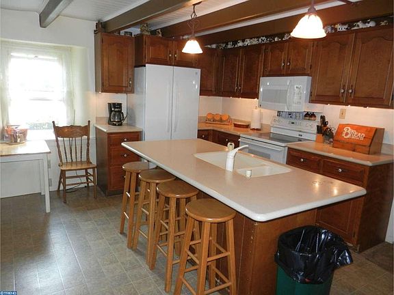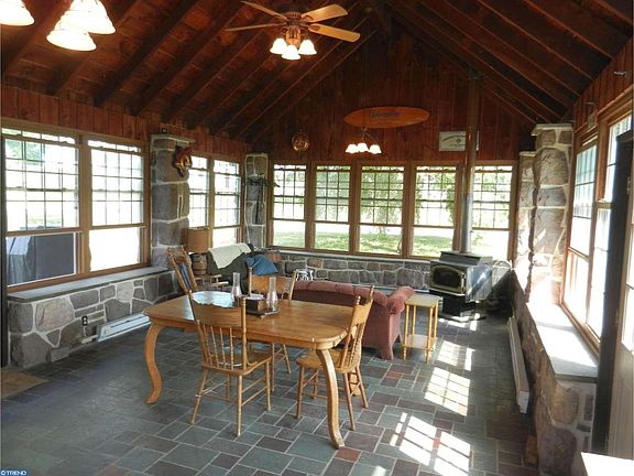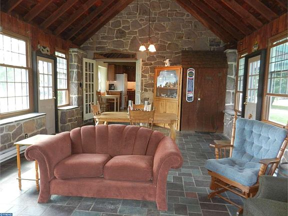 Take a step back in time and enjoy the modern convenience when you discover the charm of this charismatic 19th century stone farmhouse. Built in 1811 and situated on a little over 5 ACRES this home offers seclusion, recreation and feels like a haven. This home offers elegant curb appeal with its bordering of mature trees, shrubbery and tree-lined wrap around driveway. Gorgeous spring fed pond filled with fish, create the perfect country setting for this historic home. Entrance from large covered front porch into open sun filled living room with beautiful exposed beams and stone fireplace. Entrance into open eat in kitchen with island/ breakfast bar and walk-in stone fireplace. First floor also offers a large 4 season's sunroom with slate flooring, wood burning fireplace, exposed beams, beautiful stone walls and half bath. Master suite offers recessed lighting, walk in closet, full tiled bath with granite counter, whirlpool tub and stall shower. 2 additional bedrooms feature walk in closets and separate tiled bathrooms. Lower level offers laundry area and plenty of storage. Large barn with addition that includes electric, running water, heat, 2 offices, bathroom area and enough room to put 8 + cars etc., offers the perfect space for a hobbyist or small business. In addition you will find a 3 room spring house overlooking the pond perfect for an in-law suite or office area. Bring your HORSES (5 allowed on this property)! Second garage is perfect for a stable/small barn open to pasture. This home is in close proximity to major routes, dining, shopping and much more. This home will not last! Be sure to schedule your appointment today!