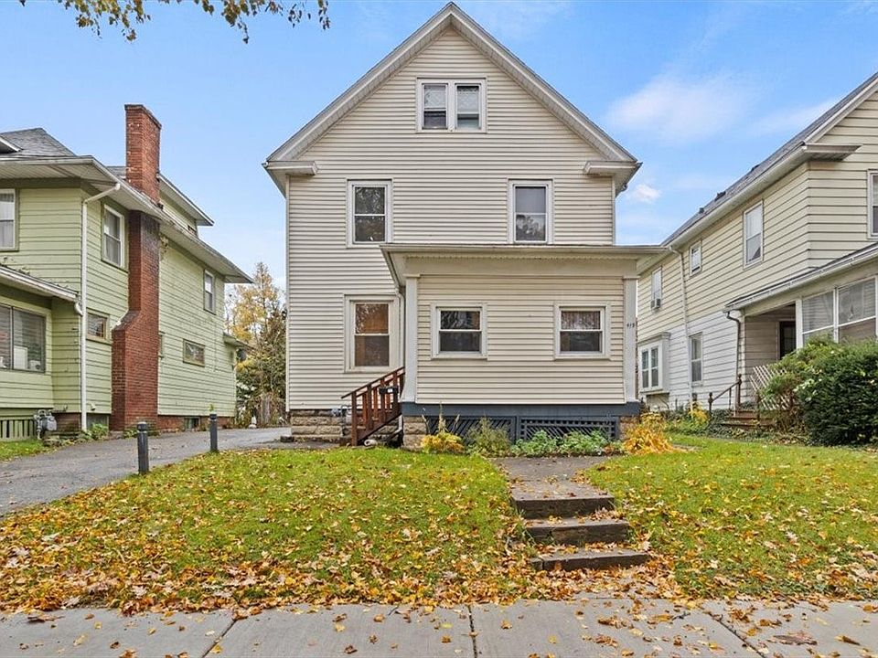 Start your year off right with this AMAZING owner-occupant or investment OPPORTUNITY! Welcome home to this spacious 4 bedroom, 2 full bathroom colonial, located on a large fenced-in lot! Enjoy the sun-drenched front porch on warm Rochester days, or head inside to the freshly painted and spacious living room with newer vinyl windows and high ceilings. The updated kitchen boasts luxury vinyl plank flooring and crisp white cabinetry. Just off of the kitchen, you'll find a cozy den with an adjoining first-floor full bathroom with custom shelving. Upstairs hosts four sizable bedrooms plus a second full bathroom with tile flooring and vanity. The walk-up attic offers additional living space opportunities or wonderful storage space! Fresh paint, new flooring, and a BRAND-NEW furnace make this one maintenance-free and move-in-ready! Delayed Negotiations to 1/7 @ 5PM.