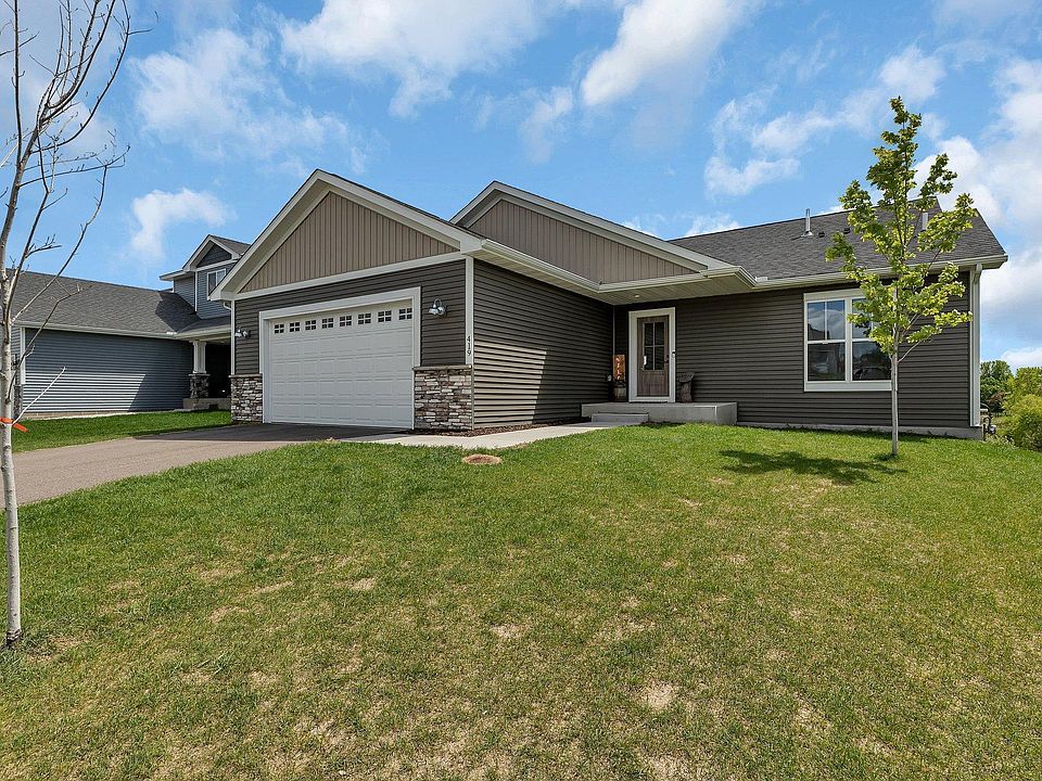 Welcome to this Move in Ready Walkout Rambler in Isanti! Walk in to an open floor plan with a large kitchen and island, stainless steel appliances and vaulted ceiling! Home also features a spacious living room, main bedroom with a large walk in closet, main floor laundry, and 1460+ finished sq ft on the main level. Lower level has a full unfinished basement that walks out to a 12x10 concrete pad overlooking the back yard. Property also features a 25x24 2 stall attached garage that is insulated, in ground sprinkler system, and much much more. Call today for a private showing!