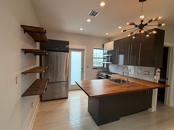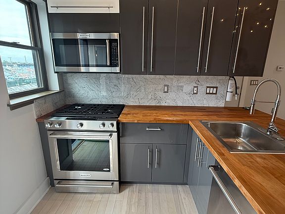WOW- LUXURY LOFT W PRIVATE ROOF DECK! Rare opportunity to live in this spacious, stunning, newly renovated apartment right in the heart of downtown Asbury Park. Big & bright w/ beautiful light oak floors, skylights & recessed lighting throughout. Wide-open living area allows you to create separate spaces & multiple uses. Beautiful Designer kitchen w/ high-end appliances, including Fridge w/ french doors and pull-out freezer w/ ice-maker, marble backsplash, custom lacquer cabinets & drawers & open shelving provide a lot of storage, large stainless sink, chandelier & butcher-block countertops. French-door opens to fire escape, easy access to fresh air & natural light. Full bathroom with shower/tub with frameless glass door. Bedroom features large windows overlooking Bond St. with custom shades & (2) double closets. Pull down stairs leads to your very own private roof deck! Perfect entertaining space with plenty of room for outdoor furniture, bar, gazebo, garden, etc. + equipped w/ extra power for lights and speakers. Front-load stackable Washer and Dryer in-unit. Central heat & air. Tankless hot-water heater. Ideal LOCATION- only 4 blocks to the beach & steps away from shopping, coffee, salons, yoga, art, music & the best restaurants/bars at the Jersey Shore! Located on (quieter) one-way side street above retail store (all businesses on street close at 7pm). On-street parking. Residents may obtain a parking permit from city $99/year. Covered parking garage on Bangs Ave (1 block away) has free parking on weekends and offers monthly parking. Tenant pays gas & electric. Water, sewer & trash included. Pets OK w/ one time non-refundable pet fee. Move-in ASAP! Hurry, this one won't last! Renter responsible for gas (heat/stove) & electric. Owner pays for water, sewer & trash. Verizon Fios -Cable & high-speed internet provider. Security Deposit 1.5 mo rent. Renter responsible for Certificate of Occupancy Application fee