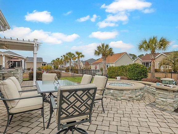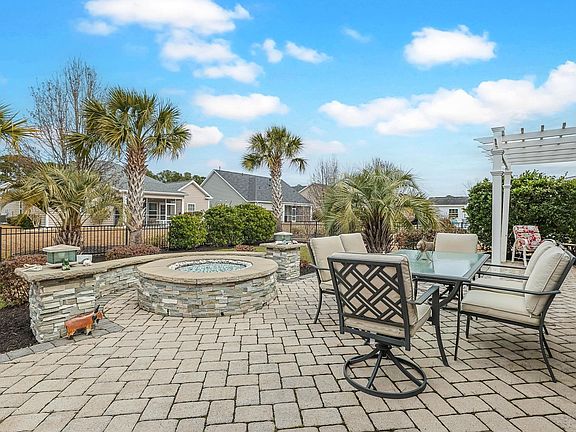 Discover 419 Broadmoor Drive, nestled in the desirable natural gas community of Brookfield Estates. This impeccably maintained Magnolia Model home offers 3 bedrooms and 2.5 bathrooms, situated just 3.2 miles from the shores of Garden City Beach. The property boasts a beautifully landscaped lot featuring mature palm trees, custom hardscaping, and a meticulously crafted outdoor living area—ideal for hosting gatherings or unwinding in peace. Step inside to a welcoming foyer with hardwood floors that flow seamlessly throughout the living spaces. The dining room impresses with a bay window flooding the space with natural light, complemented by crown molding and a chair rail. The kitchen is a chef’s dream, offering abundant cabinetry, expansive countertops, and a spacious walk-in pantry. Architectural highlights include curved archways, tray ceilings, solar tubes, and an open-concept layout with a split bedroom design. The generous living area is warmed by a gas fireplace. The primary suite is a retreat, featuring dual walk-in closets, double sinks, a vanity, a shower, and a luxurious soaking tub. The Carolina Room adds charm with a built-in dry bar, wine rack, and ample storage, while a wall of windows creates a serene ambiance perfect for relaxation. Outside, the exceptional entertainment space shines with a built-in gas grill, refrigerator, hot and cold running water, paver patio, custom natural gas fire pit, and a retractable awning with optional lighting for evening enjoyment. The backyard is adorned with six mature palm trees, each illuminated by landscape lighting on a timer for stunning nighttime appeal. The home has a tankless water heater and there have been recent upgrades which include a new HVAC system (2021), a new roof (2021), and a new refrigerator (2024). Just minutes from the Murrells Inlet Marsh Walk and a host of local attractions, this home offers access to a community pool and tot lot. As the most sought-after Magnolia Model in the neighborhood, it’s a true gem. Perfectly positioned, this location provides easy access to beaches, golf courses, and the lively attractions of Myrtle Beach and Murrells Inlet—think exceptional dining, acclaimed off-Broadway shows, public fishing piers, the picturesque Marsh Walk, and unique shopping along the Grand Strand. Everyday essentials like grocery stores, banks, post offices, medical facilities, and pharmacies are conveniently nearby. Dive deeper into this stunning home with our state-of-the-art 3D virtual tour!