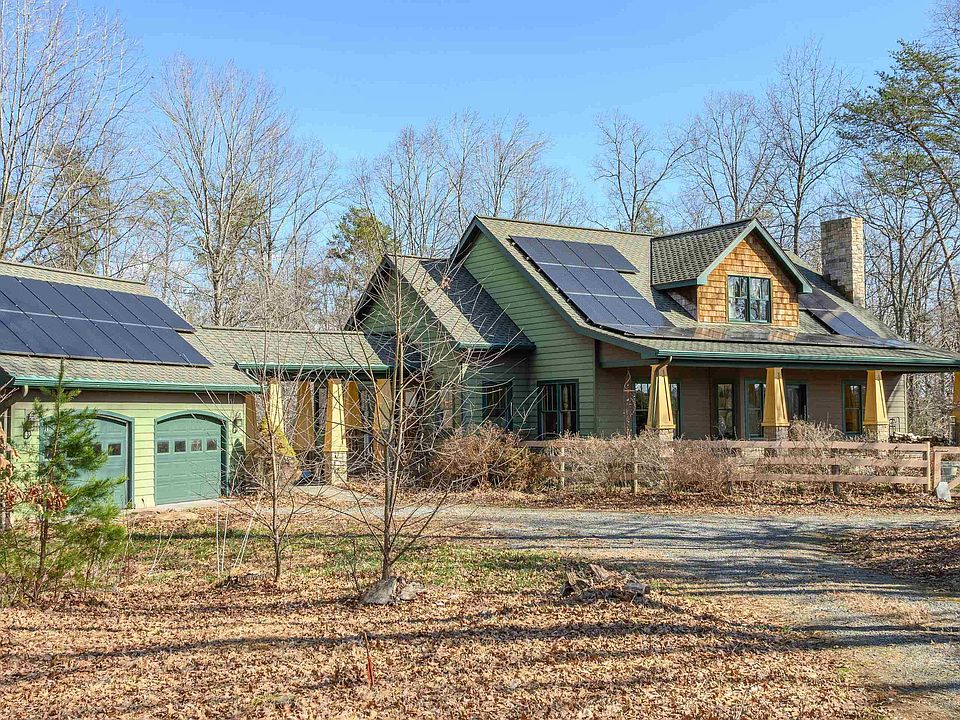 Arts & Crafts style custom home on 4.68 acres with mountain views! This home is beautifully constructed with the highest quality of locally sourced materials. The 1st floor features an open floor plan great for entertaining. Special features include cork, bamboo & oak flooring, custom maple & poplar doors, riverstone hearth with high efficiency wood stove, 1st floor master, conditioned storage and finished walk out basement. Fantastic outdoor living including a large front porch, back screened in porch & master bedroom patio. Large detached 2 car garage with breezeway. Other features include new kitchen appliances, washer&dryer, central vacuum system, whole house dehumidifier, solar panels and so much more! Very conveniently located to Charlottesville with close proximity to 250 West & I64.