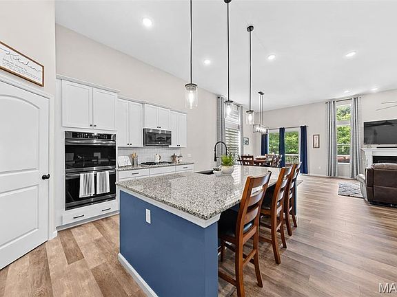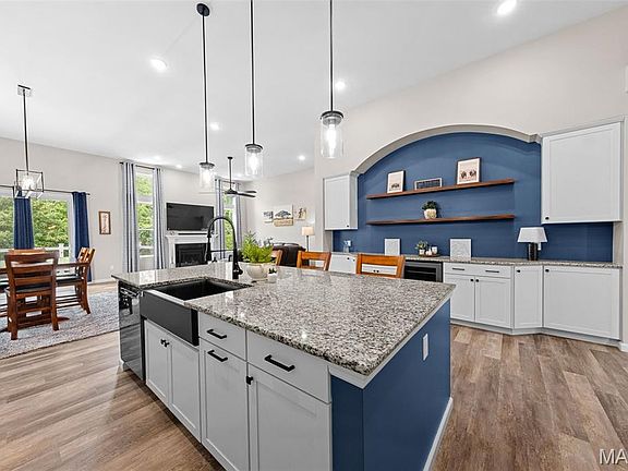Step inside this stunning 4bed/3ba home and discover a thoughtfully designed layout with high-end finishes and modern comfort throughout. This home is perfect for multigenerational living and/or entertaining . The heart of the home is the expansive kitchen with black stainless appliances, coffee bar w/beverage fridge, and built-in African mahogany floating shelves. The oversized center island offers seating and seamless flow into the dining area and inviting living room, where a gas fireplace and soaring 12’ ceilings create the perfect space to gather and unwind. Luxury vinyl plank flooring extends throughout the main living areas. The split-bedroom floor plan offers privacy, with a generous primary suite featuring double vanities, a large soaking tub, separate shower, and a walk-in closet complete with custom organization system. Secondary bedrooms are generously sized. Completing the main floor is a large in home office, flex-space, and main floor laundry.