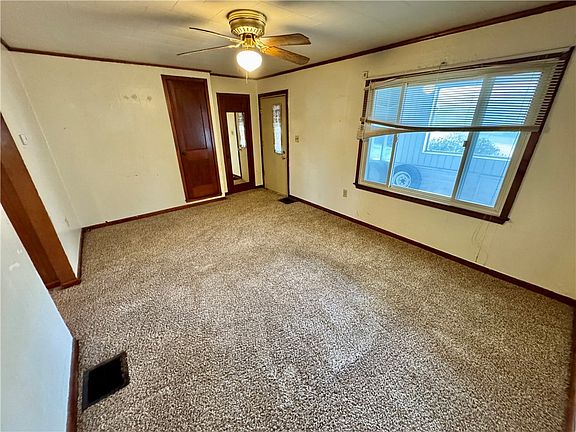 Charming home with timeless appeal! Step up to a large, covered front porch—perfect for morning coffee or evening relaxation. The front door opens into a spacious living room, complete with an entry coat closet for added convenience. Inside, the dining room is generously sized and features beautiful built-ins, hardwood floors, and classic plaster walls, exuding warmth and character. The kitchen offers easy access to the rear porch and yard, ideal for outdoor dining or entertaining. A versatile family room or potential 3rd bedroom adds flexibility to the layout. Two generously sized bedrooms, filled with natural light, feature ample closet space. The main bath is conveniently located near the bedrooms. The lower level impresses with high ceilings and a vast open basement, offering endless possibilities for storage or future expansion. The mechanics and laundry room are located here, with an exterior door leading to the backyard. Great storage and potential for off-street parking!