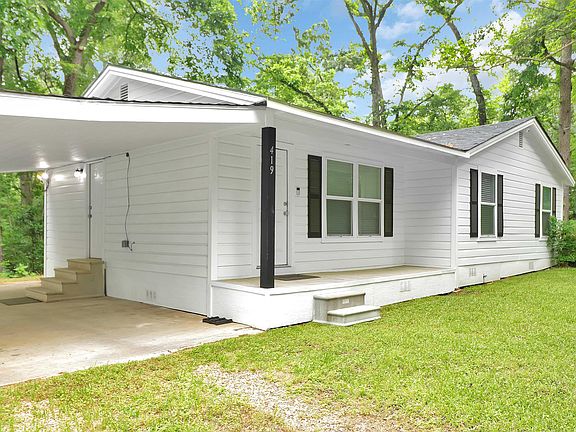 This renovated bungalow in Rusk is situated on 1.58 wooded acres and boasts a spacious yard. The 1132 square-foot home has three bedrooms, two bathrooms, and features updated wiring, plumbing, energy-efficient windows and doors, flooring, cabinets, countertops, sinks, toilets, HVAC ducts, and leveling. The interior showcases an open floorplan and generous-sized bedrooms. Additionally, the property includes a storage shed and a one-car carport. Located within the Rusk Independent School District.