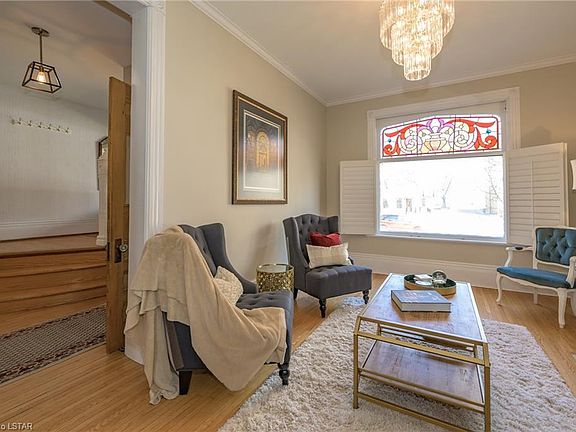 Own a character home with the historic Woodfield area charm yet have the ease of many updates. The moment you enter this gorgeous, 3 bedroom, 1.5 bathroom home you can feel how lovingly it has been maintained. The naturally lit living room has a focal heritage fireplace; the space is perfect for gathering and the formal dining ideal for holiday dinners. Have the rooms open to one another for those special times or if privacy is needed to work at home, pull closed beautiful original pocket doors. The kitchen is also light and bright, has updated counters, ample cabinetry and transitions nicely to the family room addition. Cosy in to watch TV or the surround of windows makes it the perfect room to curl up and read in. Up the wide staircase you will find three spacious bedrooms with the master having a very generous closet. The bathrooms, stunning. Recently redone with a little Old World Charm yet the luxury of what we look for today. The main bath boasts a freestanding tub, frameless glass shower, artisan tiling, dual sinks and added storage in medicine cabinet style mirrors. The chic powder room was another quality reno. Downstairs is perfect for storage. The backyard does not disappoint; a patio, two sheds, fenced and tiered perennial gardens, so lovely. With hardwood floors, high ceilings and updates that include most windows, wiring, facia/soffits/eaves and the walkability to the shops and restaurants in the core, this makes 419 Central a wonderful place to call home.