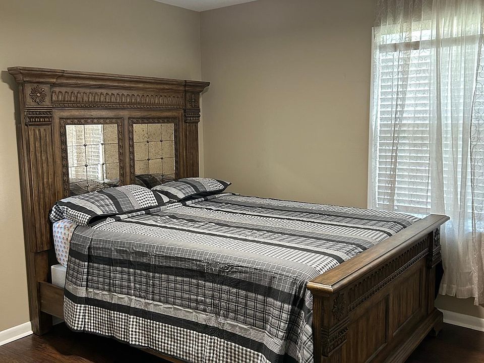 2 separate private rooms for rent. Larger room has a walk-in closet and is spacious with wide planked wood flooring hickory in shade. The room is furnished with a brand new luxurious queen size bed, new queen size bedding and a 55 inch tv adorning the wall ready for the streaming or service you so choose. The room has two beautiful windows, both with rich window treatment with one providing a view toward the front of the home and the other the side of the home. The second room is slightly smaller than the first one, with wide planked wood floors hickory in shade, a small walk in closet, a set of windows facing the front of the home, a brand new lush queen size bed with new quality bedding and a 55 inch TV adorning the wall awaiting the programming of your choice: No smoking No additional occupants Renters insurance No hosting of parties