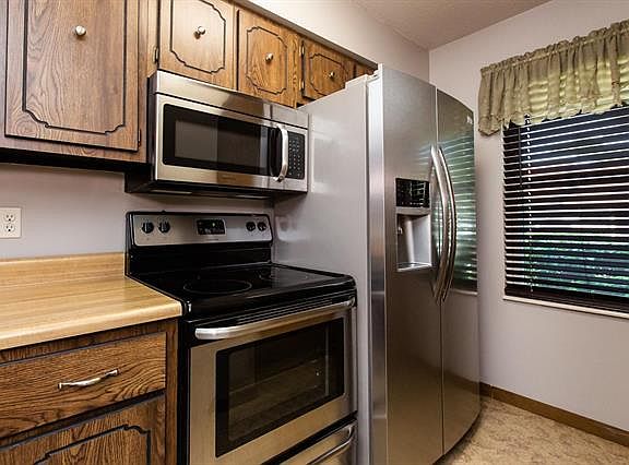 - Appliances: Refrigerator, Disposal, Microwave, Stainless Steel Appliance(s), Range/Oven-Electric