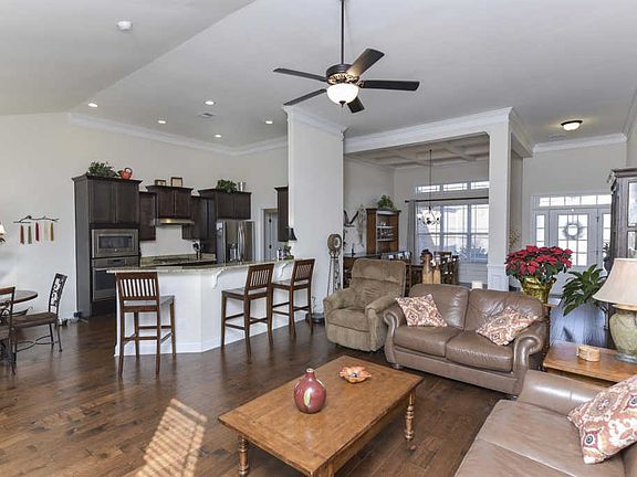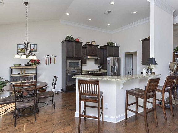 - RoomKitchenFeatures: Granite Counters, Pantry, Recessed Lighting, Eat-in Kitchen, Floors-Hardwood, Cabinets-Stained, Bar