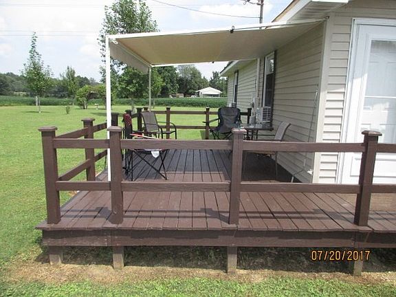 Great private starter or retirement home or in-between! This economical home can be yours! Nice level yard with shade trees. Front and back decks. Enjoy your Sun setter pull out cover for back porch. Play or work in your hobby shop and plant your own vegetable garden! This can come partially furnished! Call today for your private showing. Owner financing option with down payment.