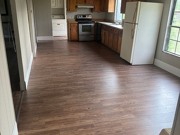 Ultimate hideaway privacy! This home has it all new laminate flooring, new double sink vanity in the master bedroom with a walk-in closet located on one end of the home and the other 2 bedrooms are located at the opposite end allowing more privacy, new dishwasher, new vanity sink in the other bathroom. It has a dining room with built in cabinets. Nice big kitchen. Comes with washer and dryer. It's located at the end of 33 acres for the ultimate privacy. Must see! One year lease required.