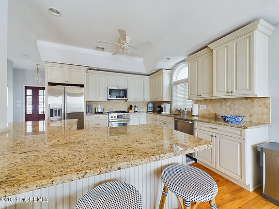 Experience ownership on coveted Chadwick Island on the Barnegat Bay boasting a boat slip which is capable of housing up to a 30' Vessel. This 5BR, 3.5BA waterfront lagoon home with 3,368 square feet of living space offers resort-style living, breathtaking views, and a lifestyle of luxury. Discover a gourmet professional-style kitchen, expansive deck and lagoon-front balconies providing the perfect setting for entertaining or simply soaking in the stunning surroundings. The home features a sunroom with indoor/outdoor bar, open living concept ensuring coastal living at its finest and endless waterfront adventures.
