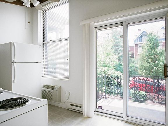 First-floor residence located in a renovated Victorian apartment building with exposed brick wood-burning fireplace; private balcony; wall-to-wall carpet; modern kitchen with refrigerator, range, and dishwasher. Coin-operated laundry facilities and private storage lockers in building. Off-street parking available for an additional monthly fee. Resident pays for gas and electric. Uncovered parking, $50.00/month. Garages (where available), $115.00/month.