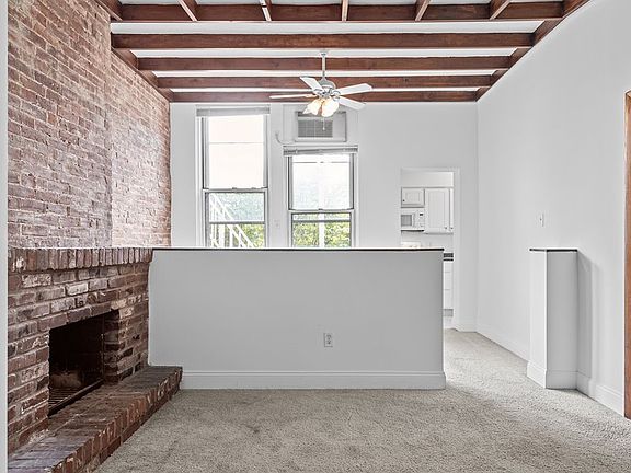 First-floor residence located in a renovated Victorian apartment building with exposed brick wood-burning fireplace and high wood-beamed ceilings; patio with private entrance; wall-to-wall carpet; modern kitchen with refrigerator, range, built-in microwave and dishwasher; and wall-unit air conditioning. Laundry facilities and private storage lockers in building. Off-street parking available for an additional monthly fee. Resident pays electric, gas (gas is only for hot water).