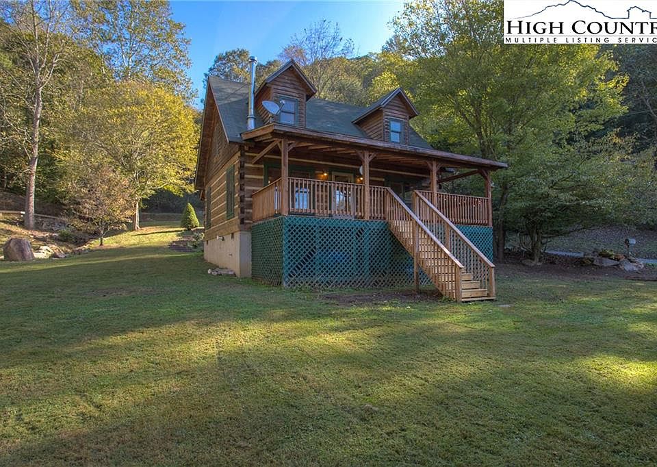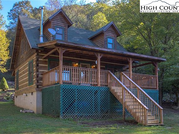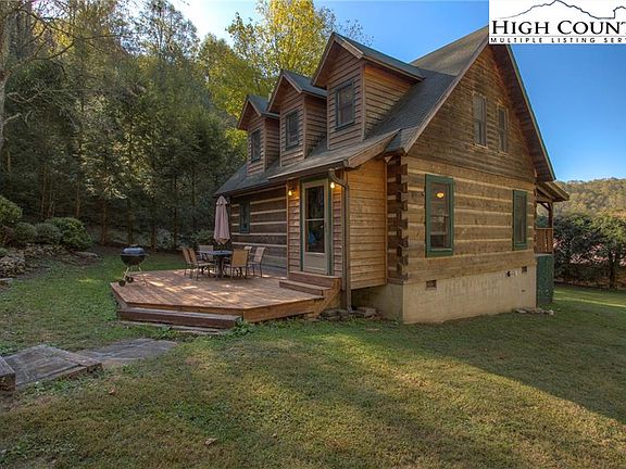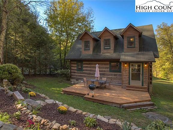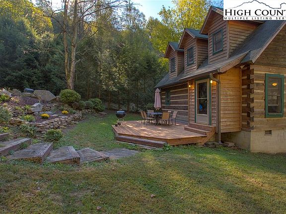 If you are looking for a warm and inviting log cabin with acreage, a serene location and close proximity to Boone.. this is it! Walk in through a wonderful covered porch to a living room with wood burning stove, and eat in kitchen. Master bedroom and bathroom is located on the main level as well the laundry and mud room. Upstairs you will find two more bedrooms, a cute office area, and a second bathroom. Enjoy almost 4 acres with a bubbling brook and a wonderful landscaped yard. Enjoy dining on your back porch, or quiet sunsets from the front covered porch. This first time on the market log cabin has been well maintained and thoughtfully cared for over the years. Home sits on 1.86 acres, with additional 1.86 acres lot that conveys with sale. Home is 5 minutes from Cove Creek Store, 15 minutes to Boone, and within close proximity to local attractions and ski resorts! Grab this one while you can!