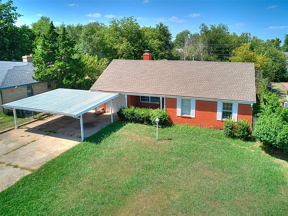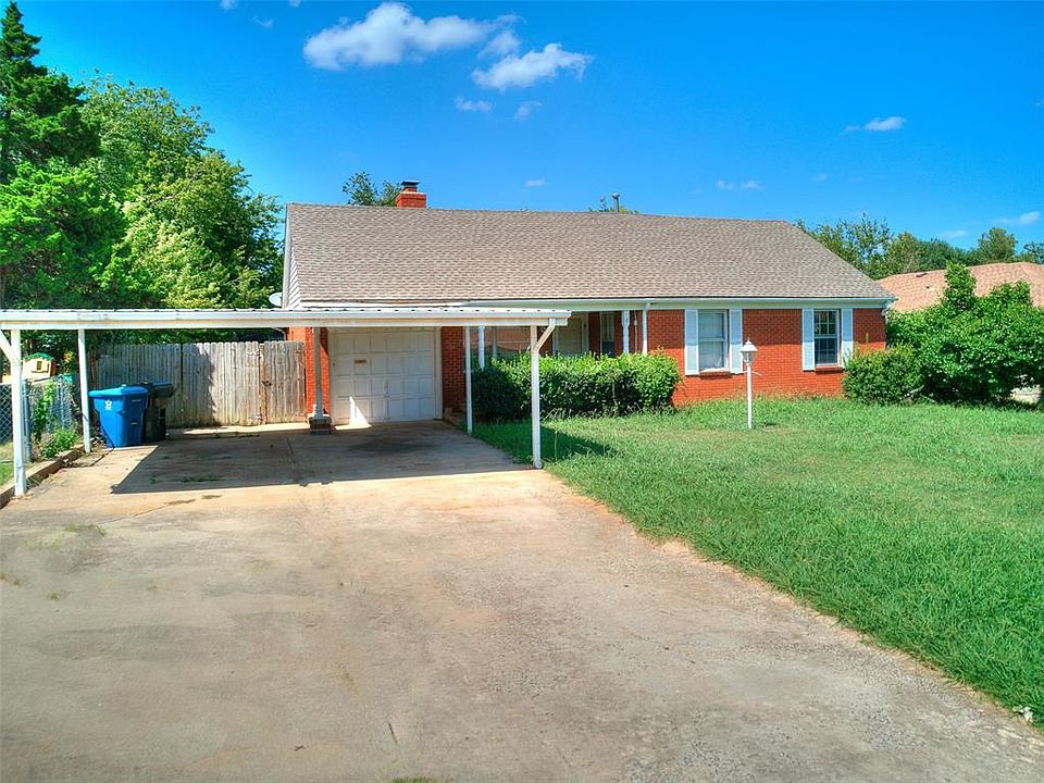 Welcome to this delightful 3-bedroom, 1.5-bathroom home in the serene Country Estates of Midwest City. Built in 1952, this 1389 sq ft gem boasts original hardwood floors, an open-concept living area with a floor-to-ceiling fireplace, and large windows that fill the space with natural light. The spacious kitchen offers ample storage and awaits your personal touch. Each bedroom features new carpet, and the home includes plenty of storage throughout. Enjoy the sunroom/flex room, formal dining space, and a covered patio in the spacious backyard with additional outdoor storage. With a one-car garage, carport, and quick access to highways, Tinker Air Force Base, shopping, and restaurants, this home is perfectly positioned for easy living. Schedule a showing today!