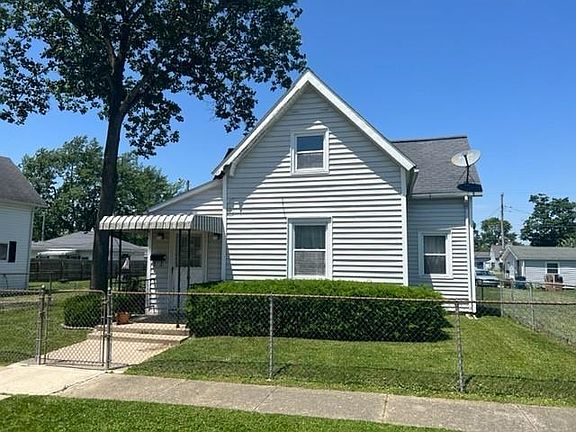 Gas City! Low Maintenance Exterior with Vinyl Siding & Replacement Windows. 5 Bedrooms & 1 Full Bath with walk-in vinyl shower. (2 Beds on Main & 3 Beds on Upper). Front Porch Enclosed Entry, Living Room/Dining Room. Eat-in Kitchen comes equipped with appliances that remain. Brand New Washer & Dryer Remain. Newer High Efficient Gas Furnace & Newer Gas Water Heater. Rear Covered Patio, Oversized Detached Garage, Fully Chain Link Fenced Perimeter. Roof is 5-6 Years Old. Offering Immediate Possession! Selling As-Is.