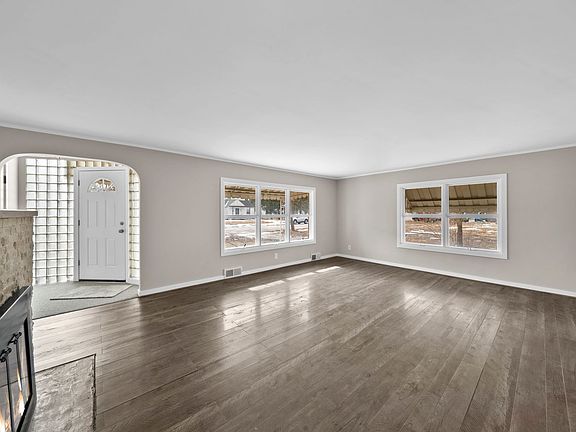 This home is a fantastic opportunity for investors or budget conscious buyers! Located on a peaceful dead end street in Plano, this move-in ready flat roof home features 3 bedrooms and a fully remodeled bathroom. The living room is bathed in natural light thanks to numerous windows and a unique clear brick entry, creating a warm and inviting atmosphere complemented by a cozy wood burning fireplace. The kitchen, complete with all appliances, leads to a spacious back room that is both heated and air conditioned, offering plenty of extra living space. This room overlooks a fully fenced backyard and a 2-car garage, perfect for outdoor activities and storage. Additionally, the home boasts a full unfinished basement with another working wood burning fireplace and rough-in plumbing for a second bathroom, providing ample potential for future improvements. Recent updates include new carpets, new roof, fresh interior paint, newer water heater, some new plumbing, updated electrical & more. Furnace rebuilt fall '24 & air conditioner has always been maintained. All that's left are your personal finishing touches to make this house your home!