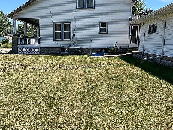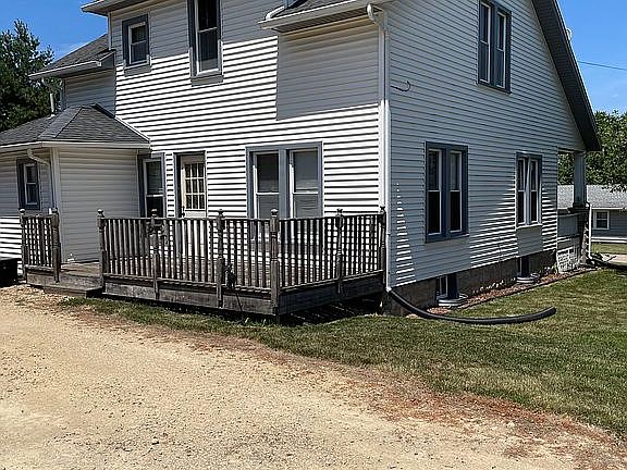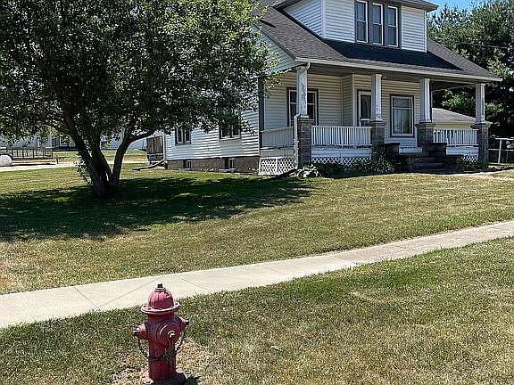 Small time living with gorgeous pocket and 6 panel doors all with original hardware. Unpainted original wide trim molding with 9' ceilings. Built in cabinet and medicine cabinet. Hard wood floors, 2 leaded glass front Windows. Water softener and water heater in last 5 years. Vinyl siding and Windows in last 15 years. 4 car garage 24x40 all insulated and ceiling storage with pull down steps last 3 years. Roof 15 years. Master, 16x9 Bedroom 2, 11x10. Bedroom 3, 16x9. Kitchen 14x11. Living room 16x12. Dining room 13x10. Bonus room main floor 14x12 can be an office or another bedroom. Dakota School District. Chain link fenced yard. City water and sewer.
