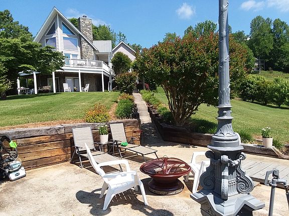 Chatuge Lake Front in Hayesville NC. Very easy access on 1.21 ac. Private property into lake. A beautiful Chalet home featuring Master BR on the top floor with Full tile Bath. 1 BR on the Main Floor with an additional bonus room used for sleeping. Full Bath on the main with nice rock Fireplace with new gas logs. Lower level has a living room, Full Bath(shower) Nice sized laundry room as well as a large room for sleeping. So you can use 4 rooms for sleeping. Septic is believed to be for 2 BR. Owner to research. Very nice living area with fantastic views of the Lake from the newly enclosed sun room. With lots of window.Lower room also has a nice rock Fireplace with gas logs. Possible game room area. 2 HVAC units. Main HVAC is new from 2019. Water filter system.Large 2 slip dock with 2 air lift jet ski docking. And get this. Your own concrete boat ramp to launch you water craft. Roomy 3 car Garage with 2 garage door openers.circle Drive with Stamped concrete. Concrete walkway to the sitting area at Dock Ramp. With Light. Nice land featuring Crape Myrtle trees and maples. A must see. Long Range views. Very nice neighborhood.more pictures to come.